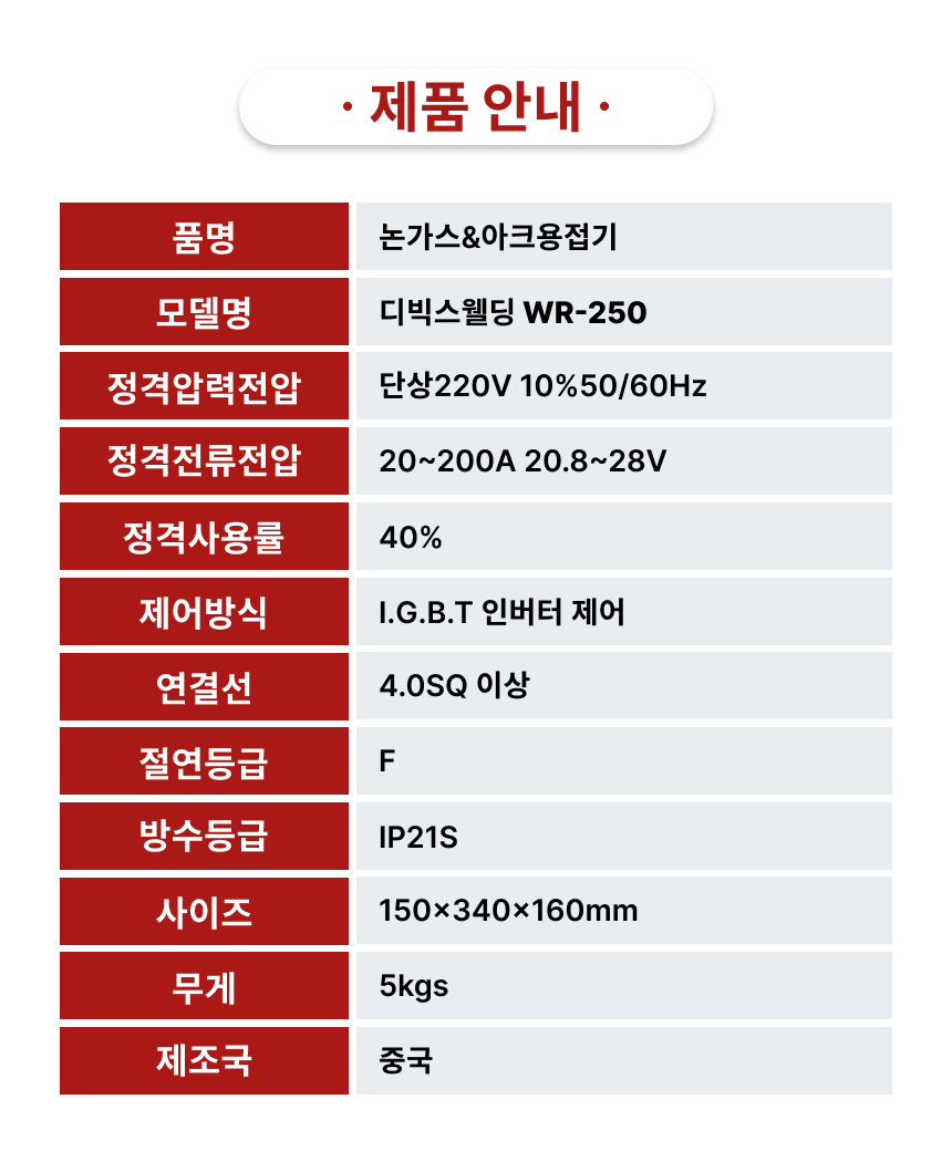 스테인리스 논가스 용접기 WR-250 > 용접장비