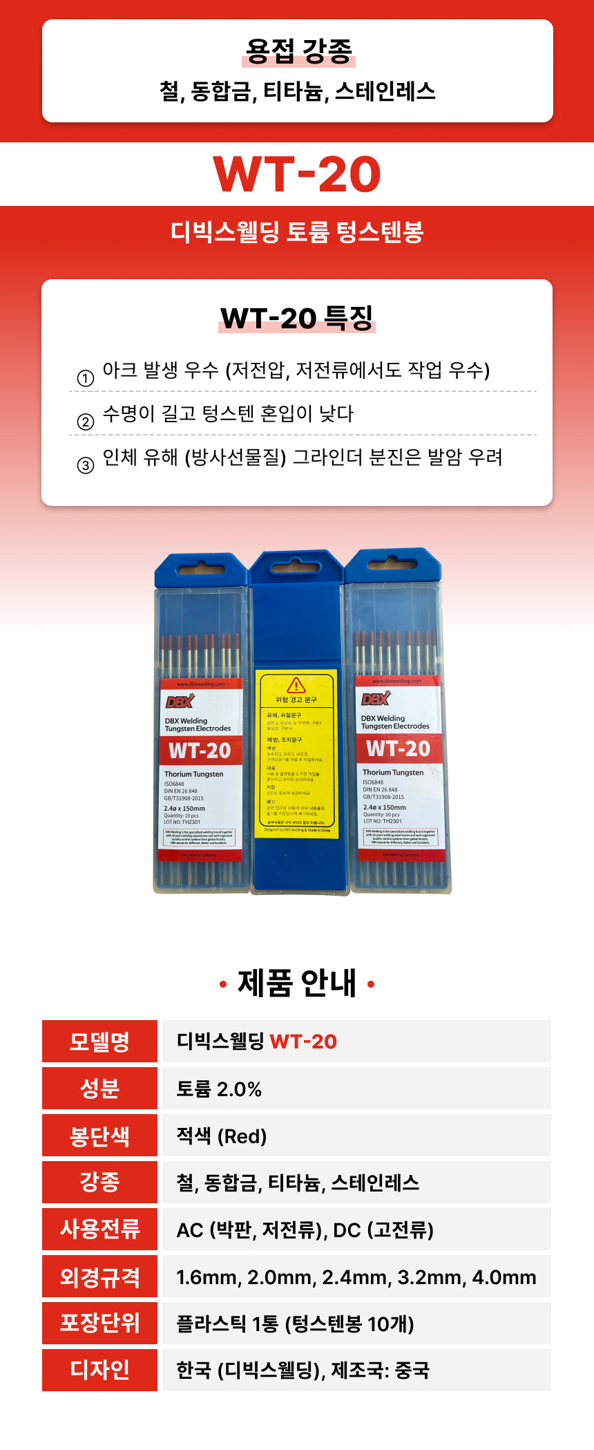 텅스텐봉 WT-20, WL-15 & WP > 용접재료