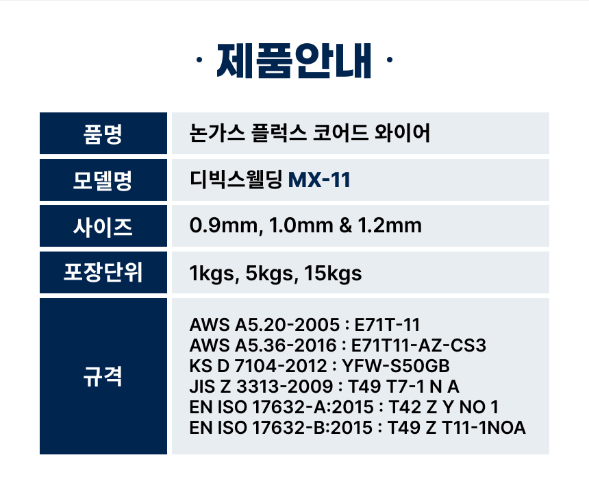 일반철 논가스 플럭스 코드 와이어 MX-11 > 용접재료