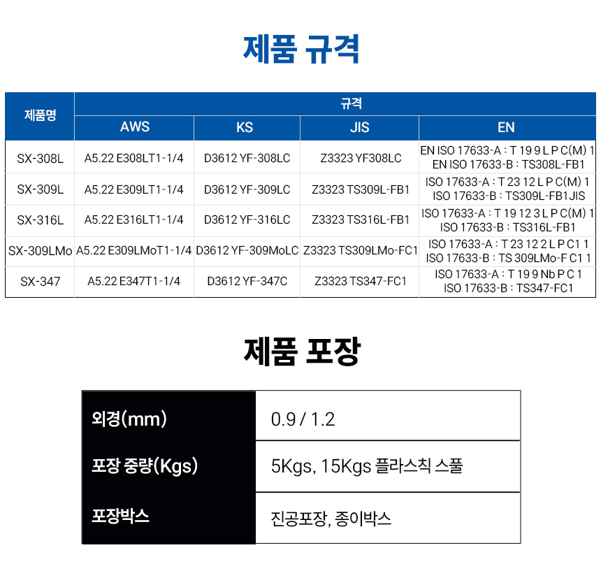 18%Cr-8%Ni 오스테나이트계 스테인리스강 용접용 (AISI STS 301, 302, 304)