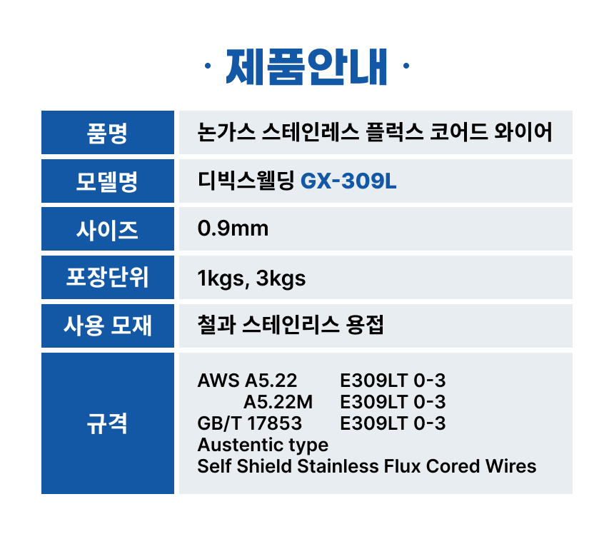 목록 목록 스테인리스 논가스 플럭스 코드 와이어 GX-309L 본문 다음 수동 아크 용접봉 CX-6013 이전 스테인리스 논가스 플럭스 코드 와이어 GX-308L 다음 수동 아크 용접봉 CX-6013 이전 스테인리스 논가스 플럭스 코드 와이어 GX-308L